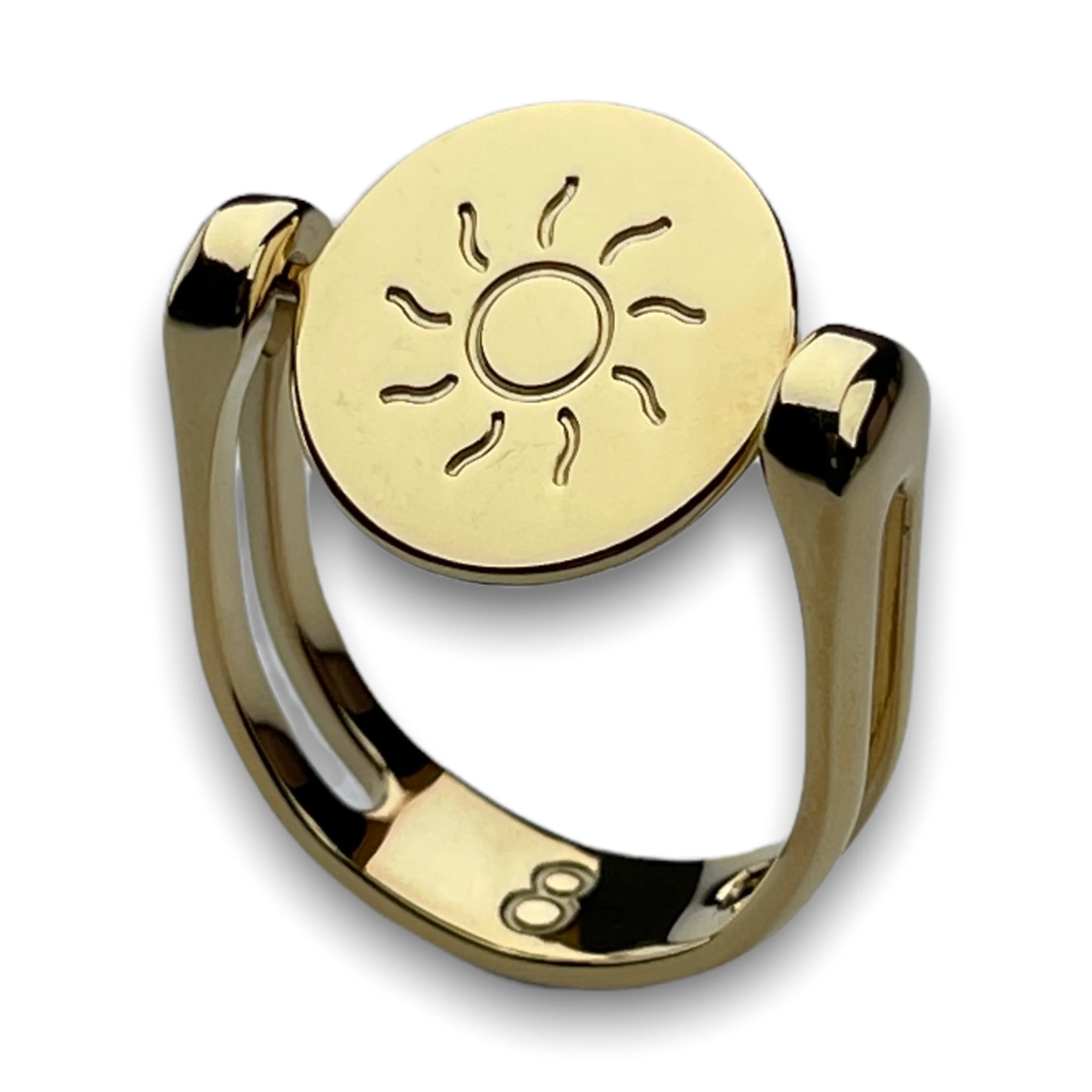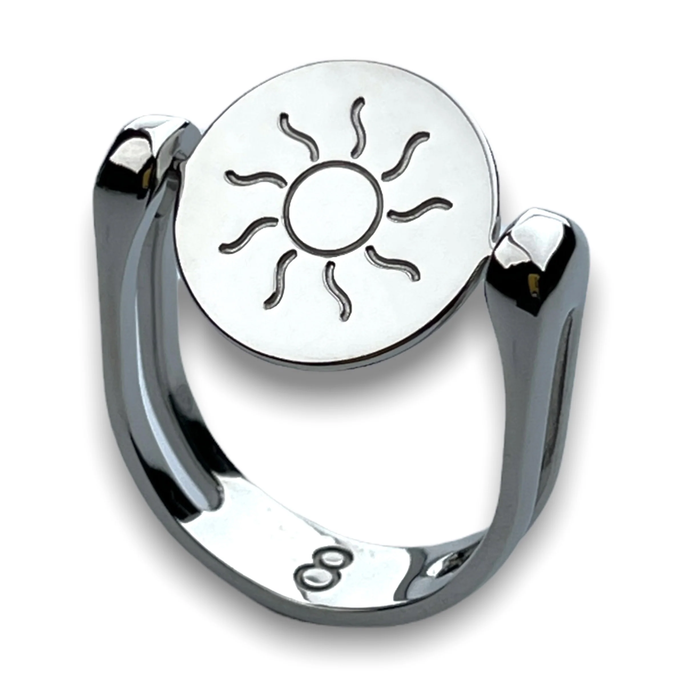 When spun, this fidget ring element appears as a sun.